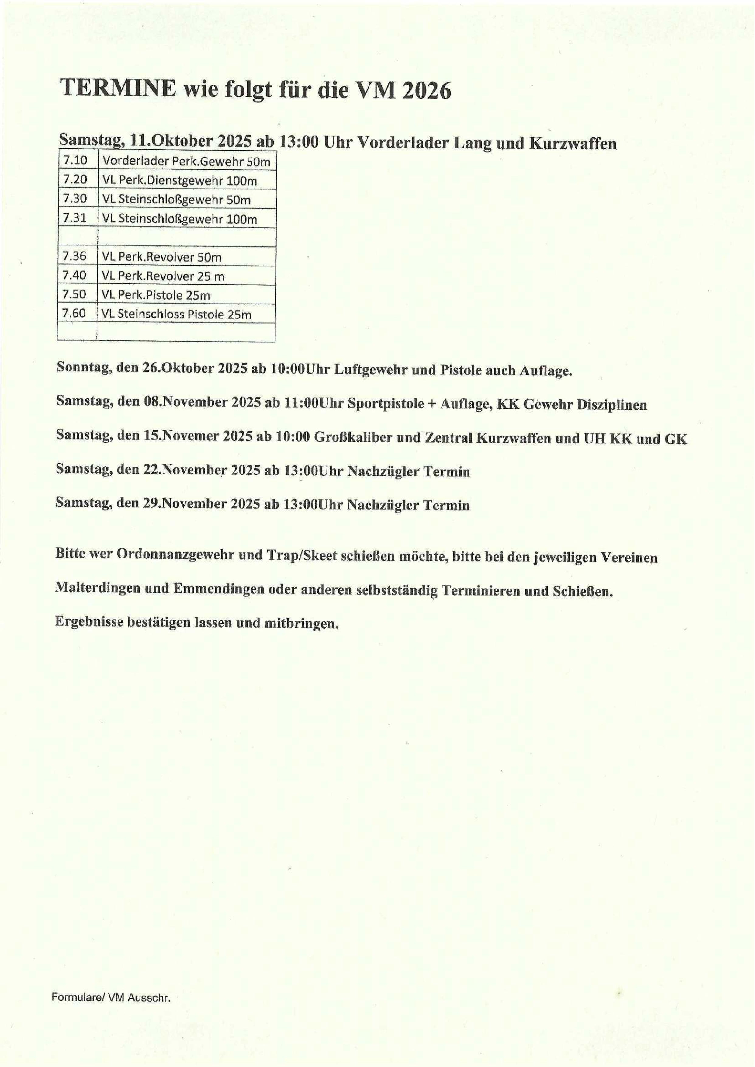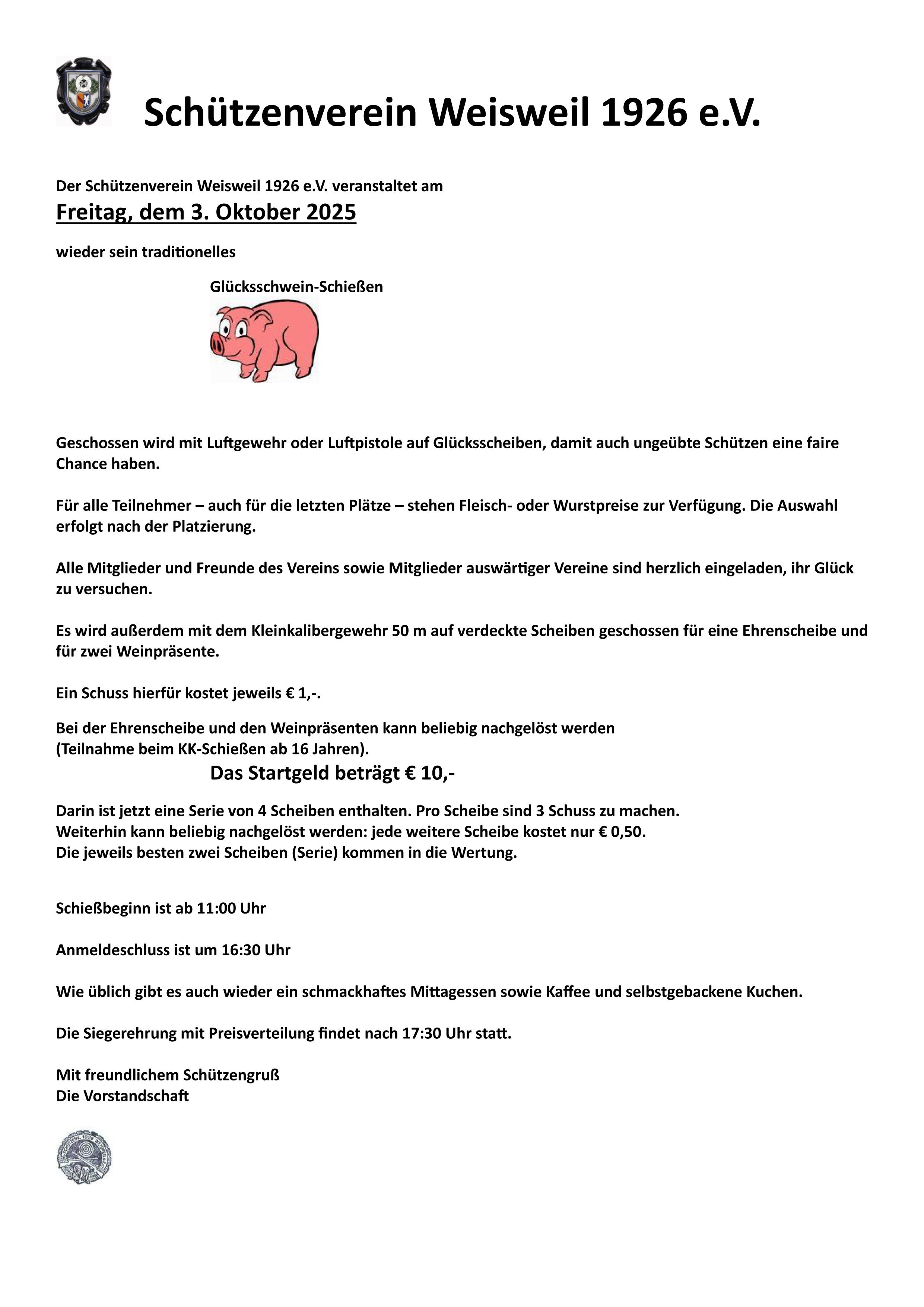 Schießbeginn ist ab 11:00 Uhr /Anmeldeschluss ist um 16:30